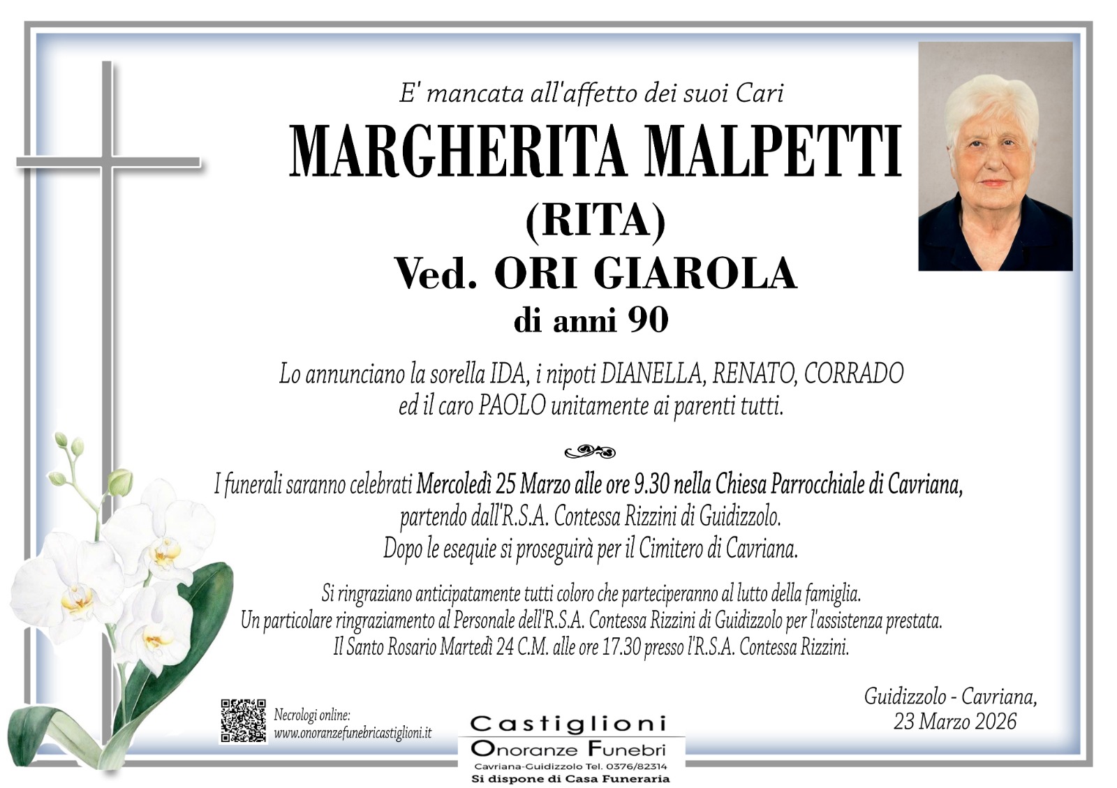 Necrologi online a Cavriana Volta Mantovana Guidizzolo (MANTOVA)